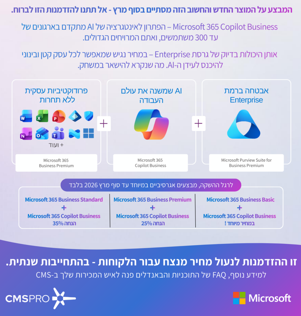 מבצע עד סוף חודש מרץ – Copilot Business 365
